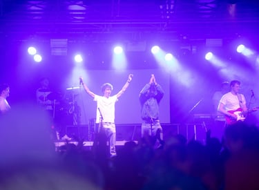 Net toen een aantal dappere zangers/zangeressen op het punt stonden het podium te betreden, begon het te regenen. Maar dat hield hen niet tegen, integendeel. Het publiek zong vol overgave mee, en de ambiance werd er alleen maar beter op!! Het enthousiasme van de Cavaoke- bandleden werkte dan ook zeer aanstekelijk!! Het werd één groot feest!!