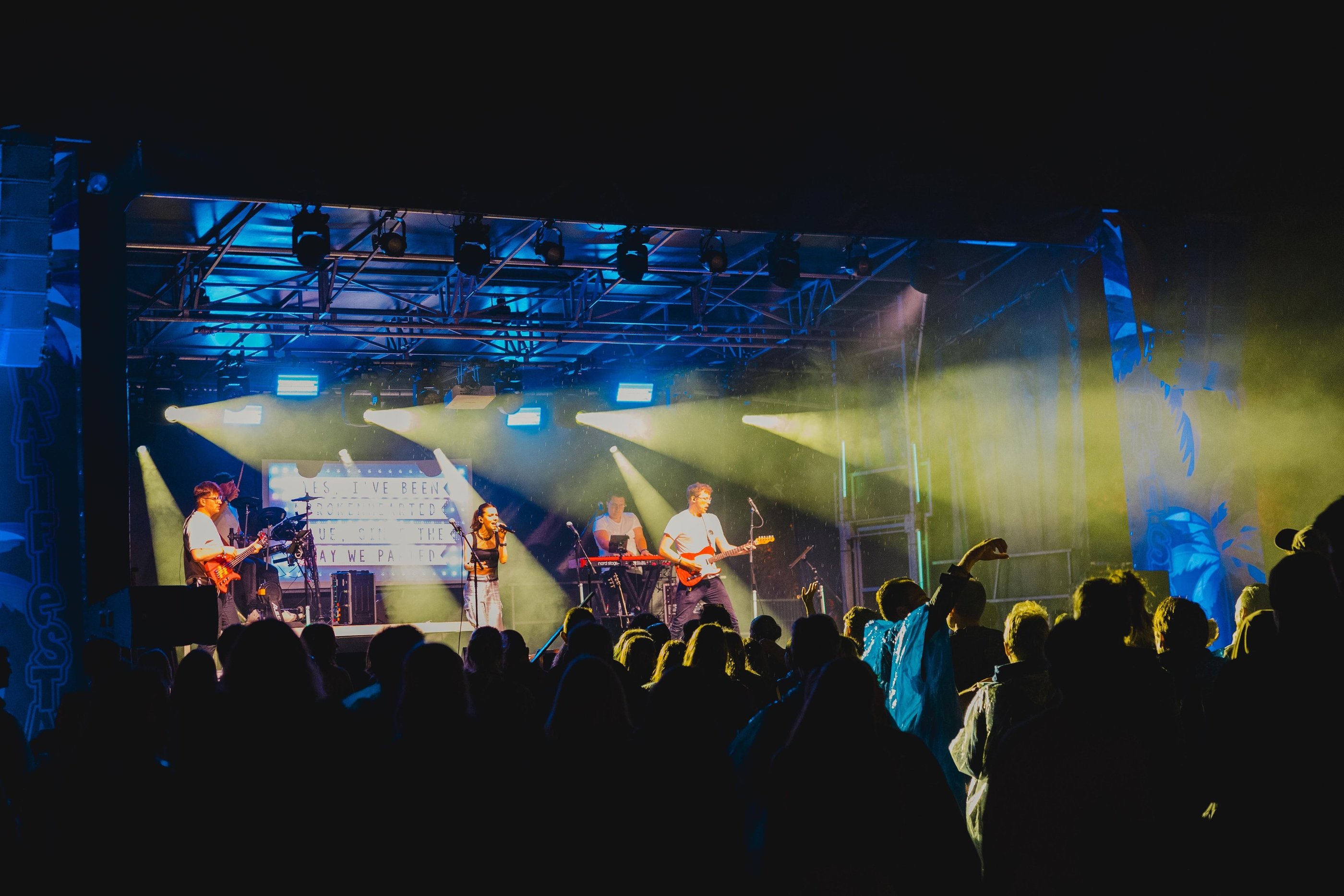 Net toen een aantal dappere zangers/zangeressen op het punt stonden het podium te betreden, begon het te regenen. Maar dat hield hen niet tegen, integendeel. Het publiek zong vol overgave mee, en de ambiance werd er alleen maar beter op!! Het enthousiasme van de Cavaoke- bandleden werkte dan ook zeer aanstekelijk!! Het werd één groot feest!!